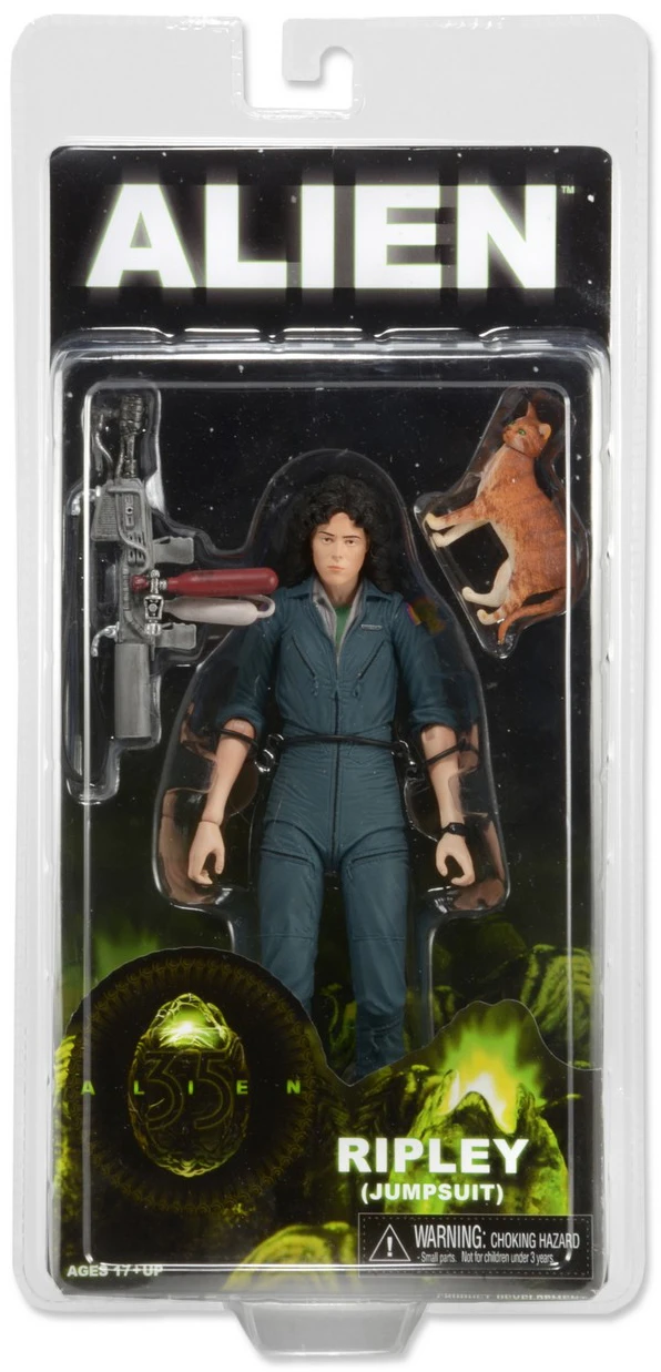 Ripley in Nostromo Jumpsuit comes with flamethrower and Jonesy the cat.