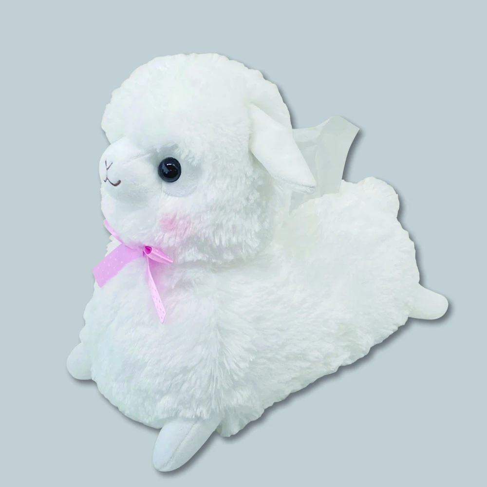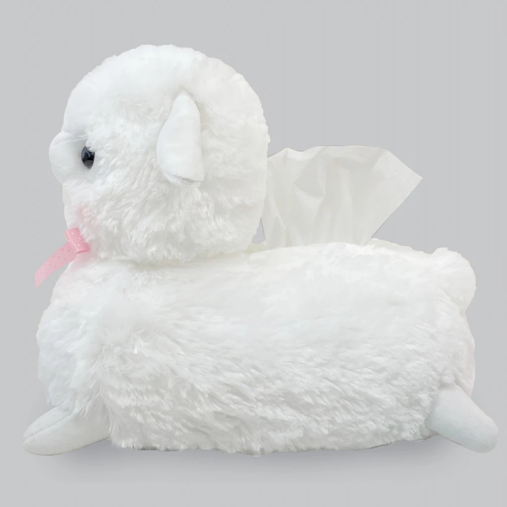 A baby alpacasso tissue cover with a cute lying pose! The appearance of dressing up with a ribbon is very cute. Great impact as an interior decoration for your room! It is a perfect gift item.