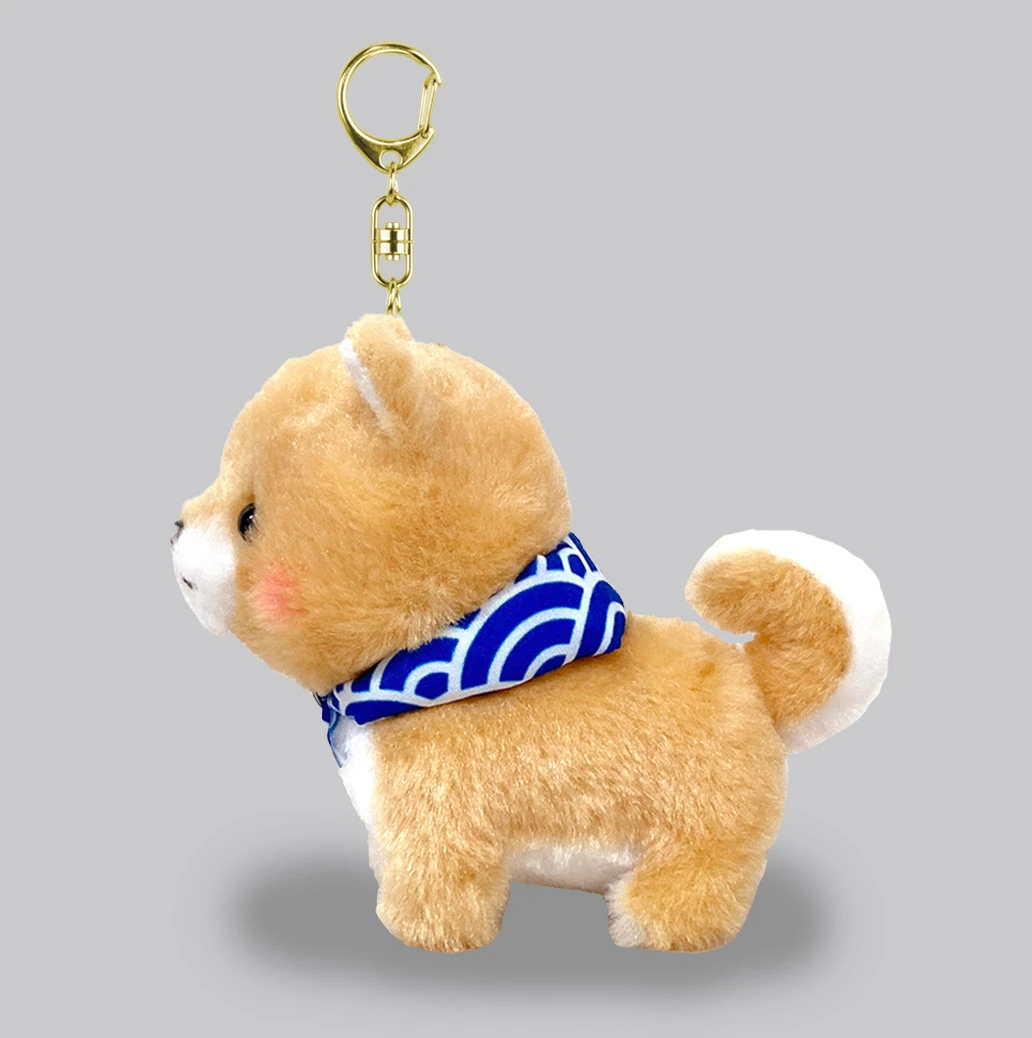 Mametaro is a big brother of the three, loves travelling around Japan. His pink cheeks, standing ears and a curled tail is cute. Also a “Furoshiki”, Japanese style scarf on his neck is charming. It’s a mascot with a gorgeous gold key ring.