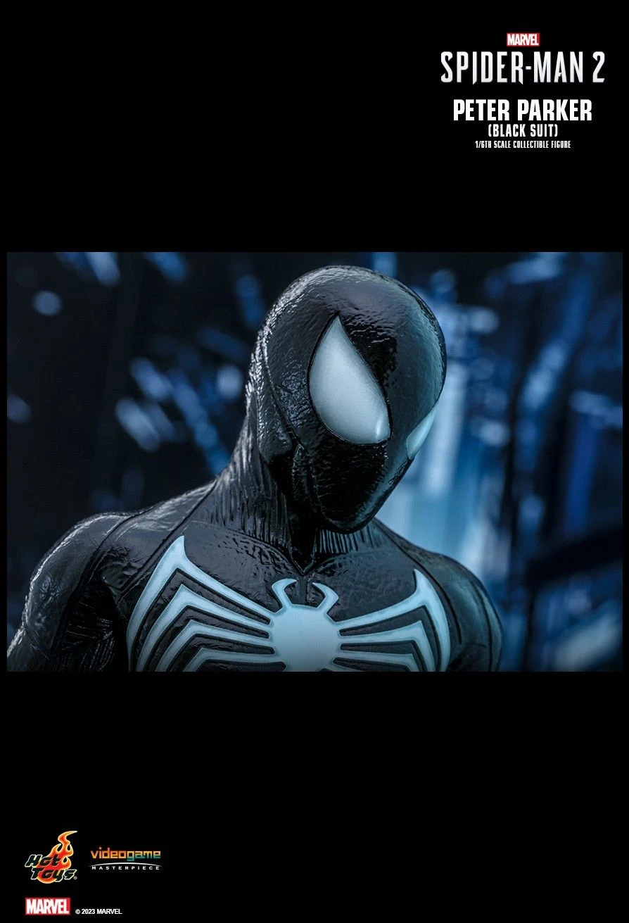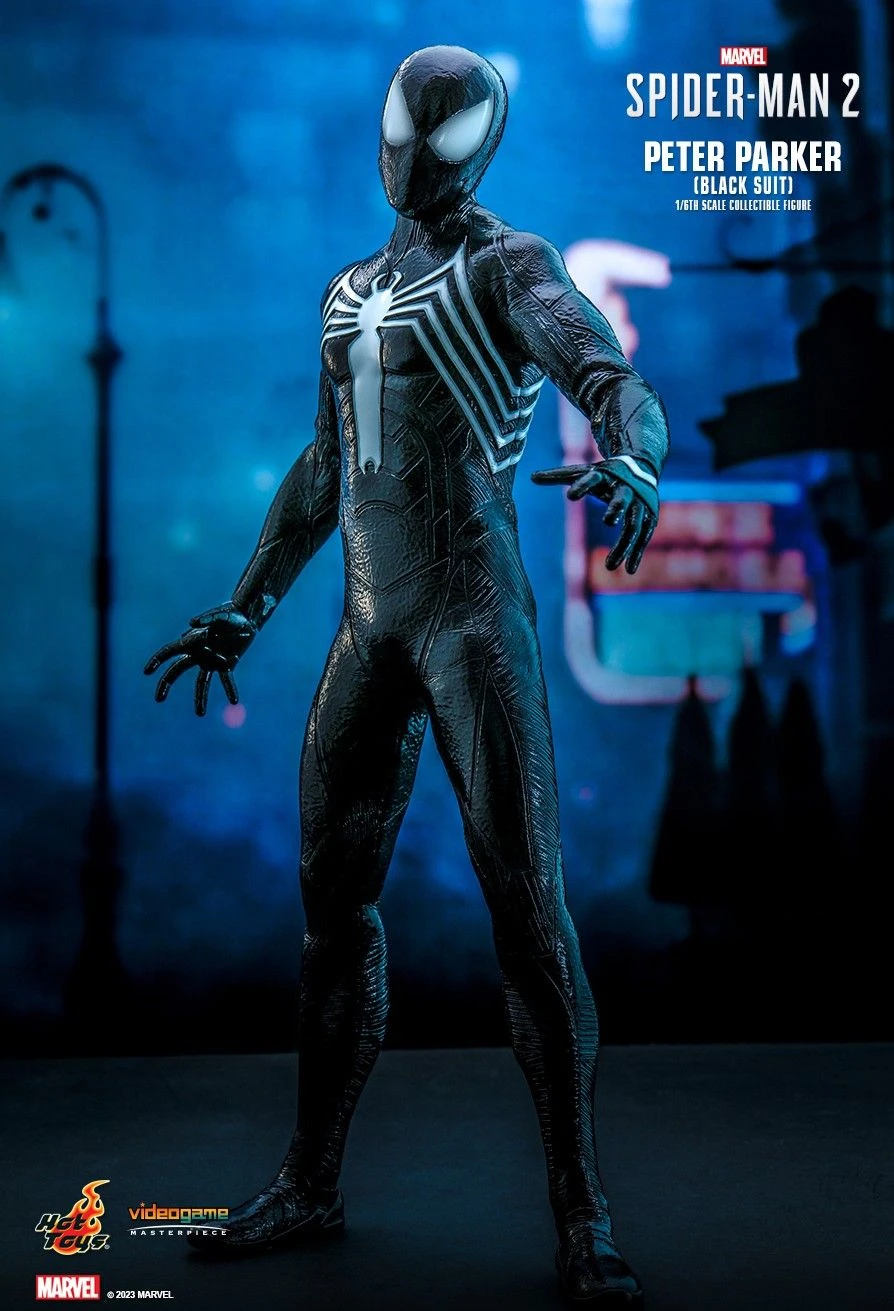 - Authentic and detailed likeness of Peter Parker in Black Suit from Marvel’s Spider-Man 2 game