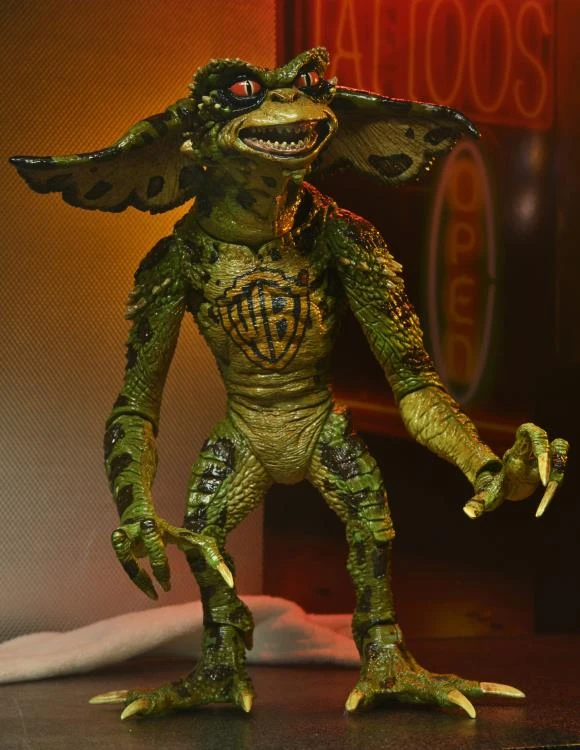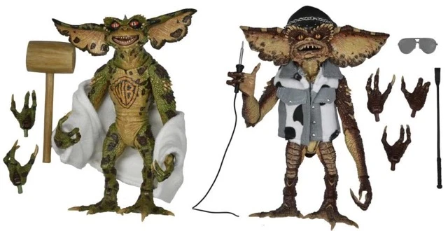 The Gremlins are back, and this time they’ve taken control of a high-tech skyscraper in New York City! From the sequel movie Gremlins 2: New Batch, these two 7″ scale, fully articulated Gremlins figures (approximately 6″ tall) have taken up residence in a tattoo parlor and are ready to show off their new ink. They come with interchangeable hands, tattoo instrument, mallet, sunglasses, riding crop, plus fabric towel and jean vest.